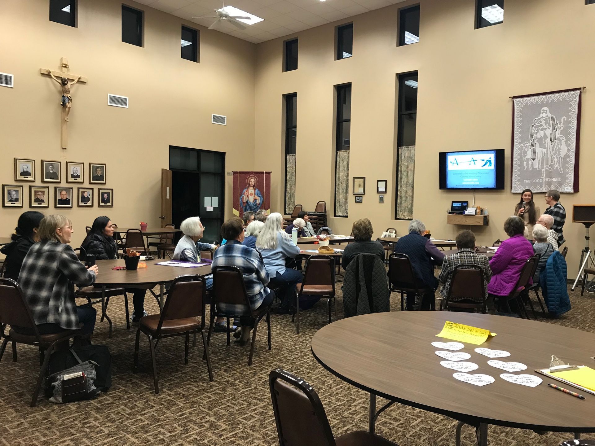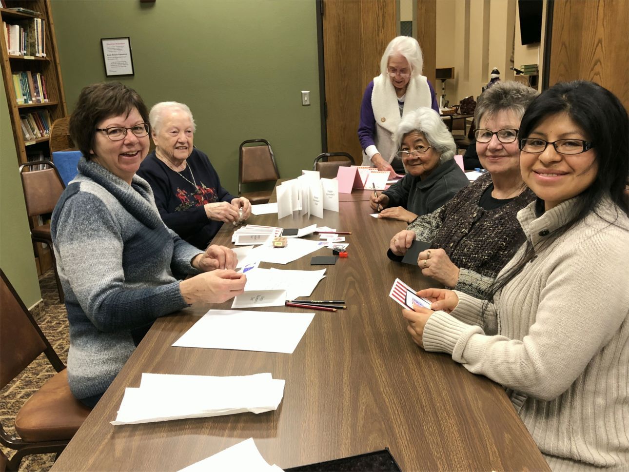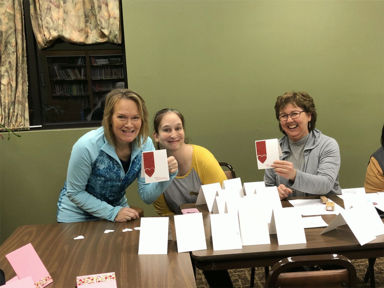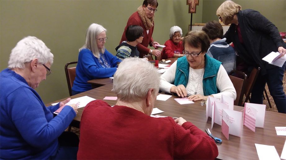 Making homemade Valentines to bring love and joy to our Homebound and Care Centers Parishioner.